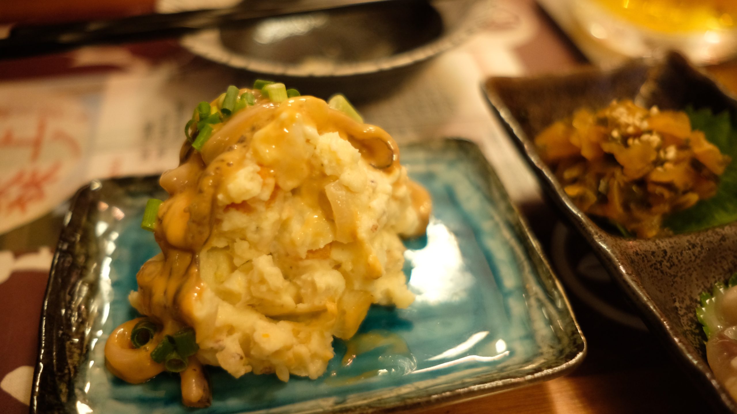 おでん@坂ノ上ノ青森(代々木上原) 塩辛on theポテトサラダ ワンカップをおでんの出汁で割る。至高。 りんごハイボール。ウィスキーを吸ったリンゴは、もはや食感のあるウィスキー🥃 日本酒をスプーンですくって飲む