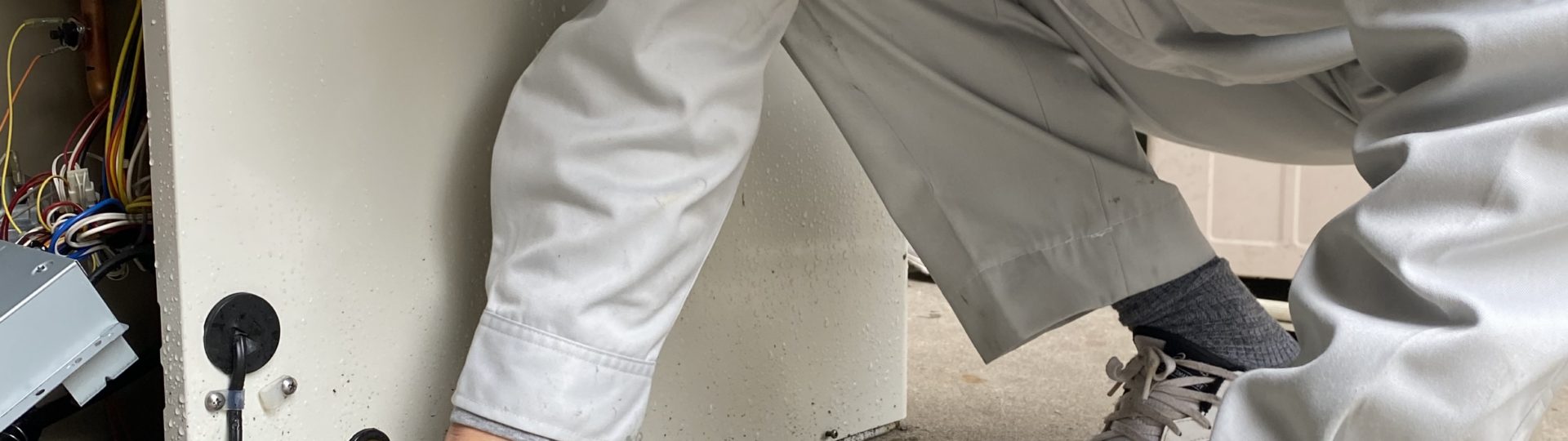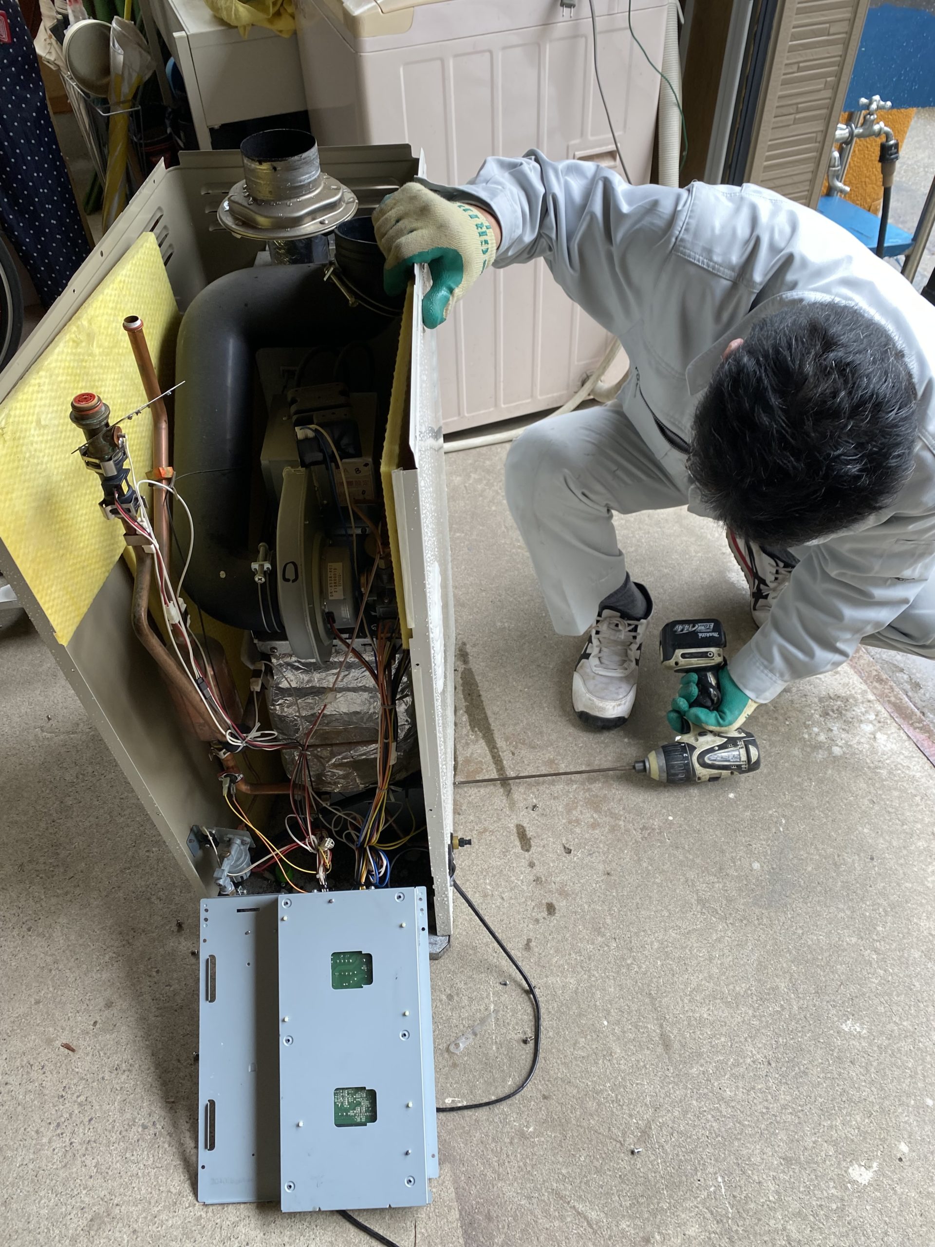 古いボイラーを分解中