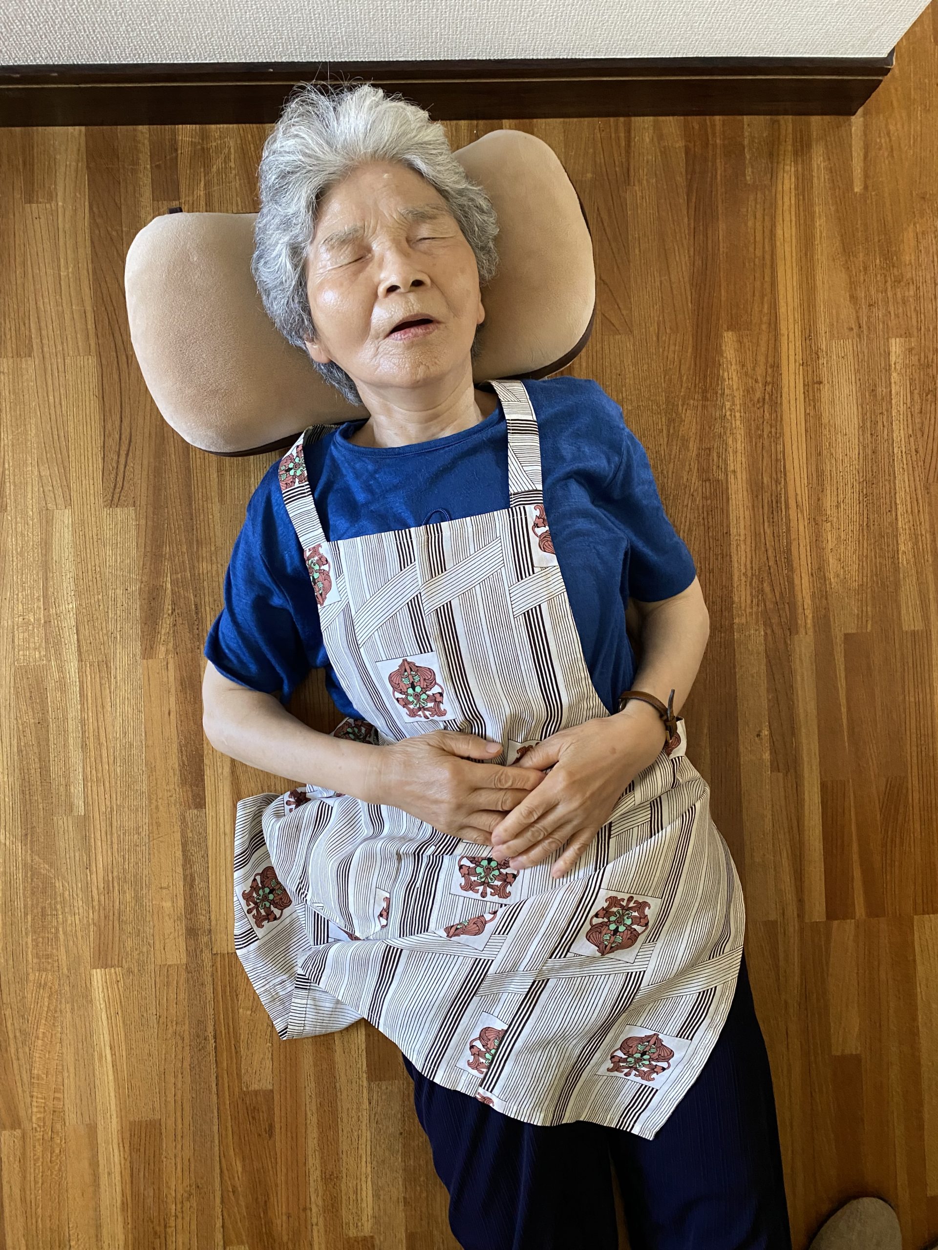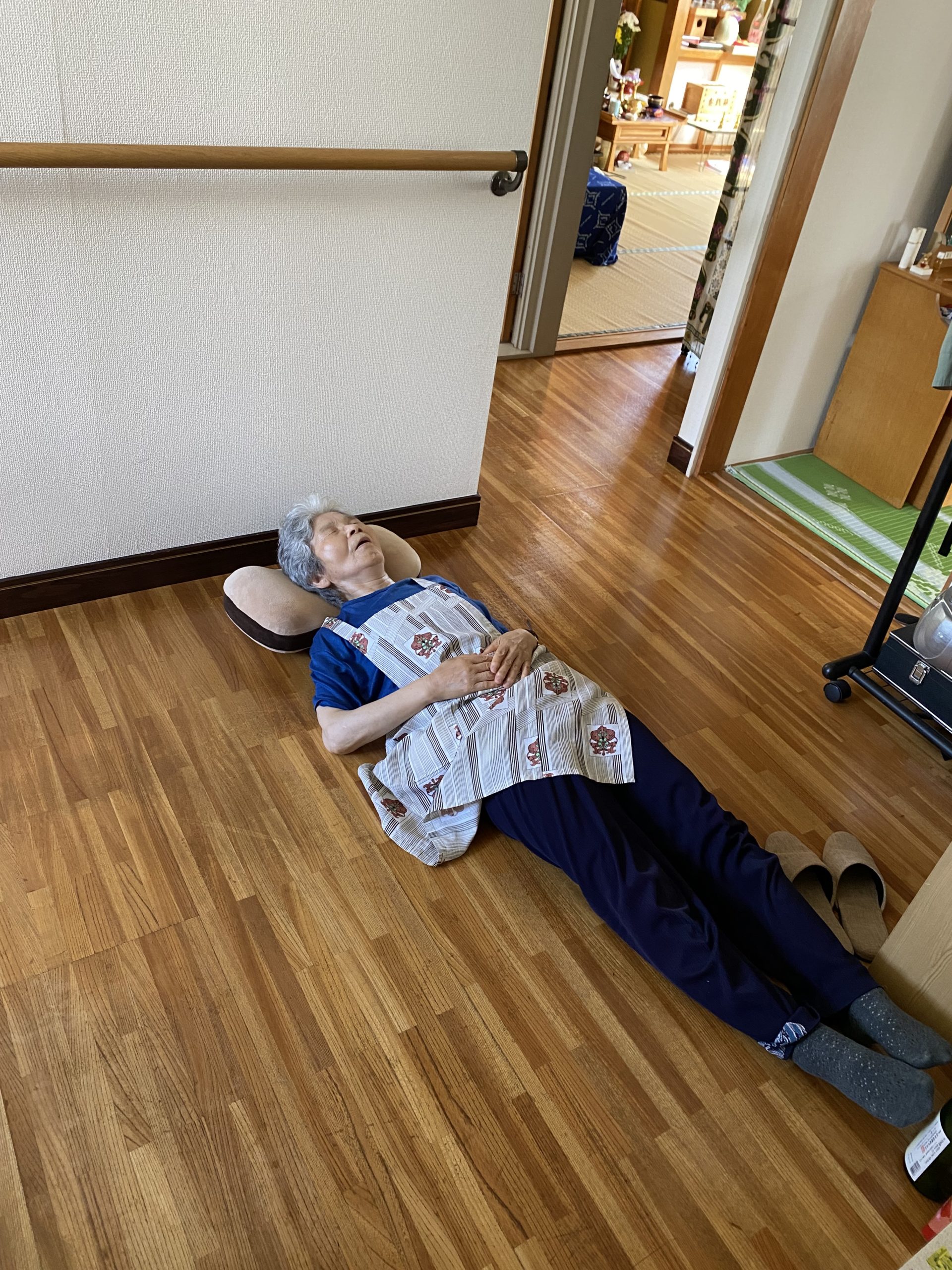 暑くて廊下で寝る